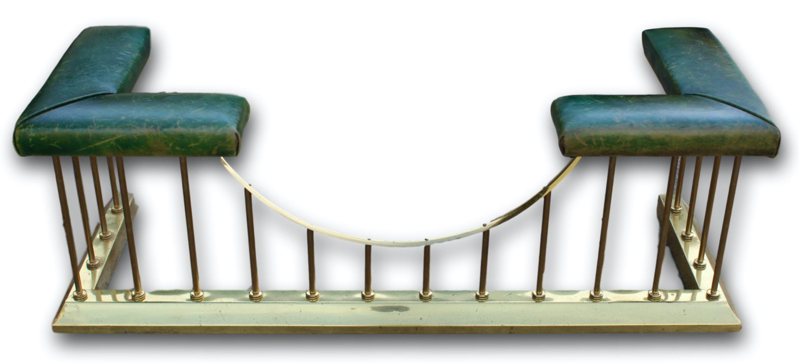 Early 20th Century Brass & Green Leather Club Fender (1 of 6)