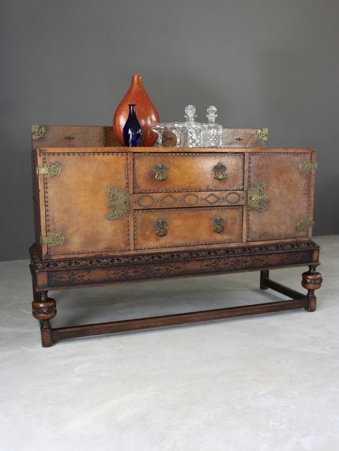 Early 20th Century Brown Leather Studded Sideboard (1 of 1)