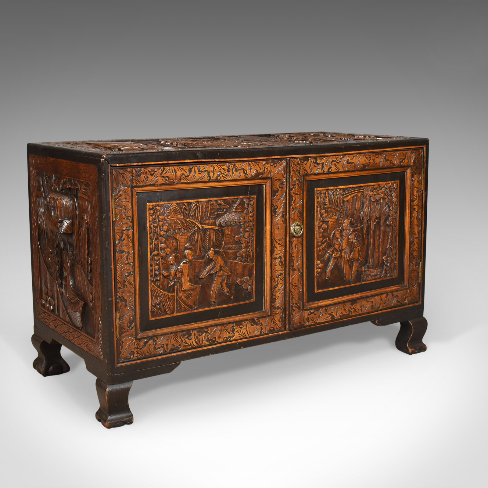 Early 20th Century Camphor Wood Chest, Oriental Carved Trunk