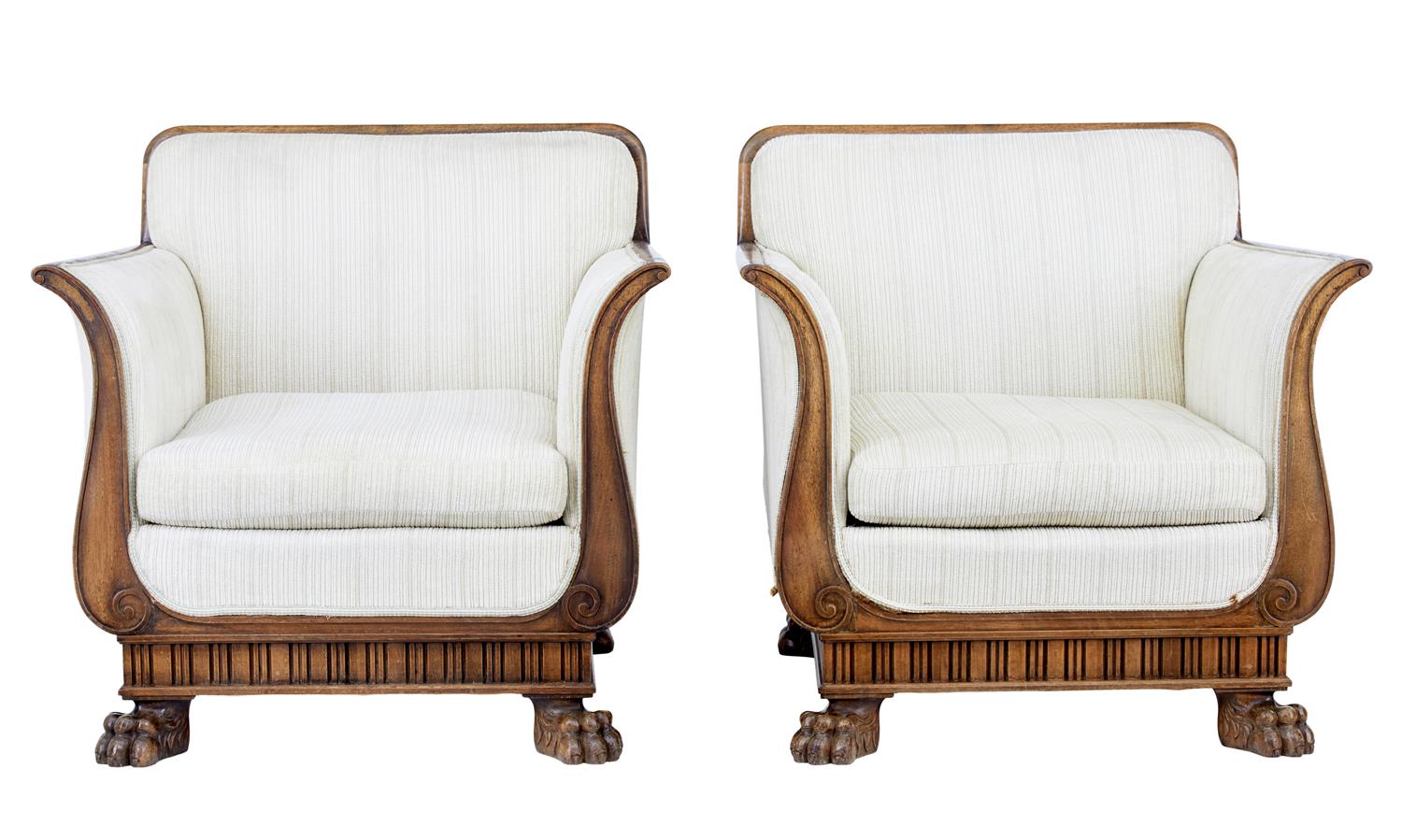 Early 20th Century Carved Mahogany Armchairs (1 of 1)