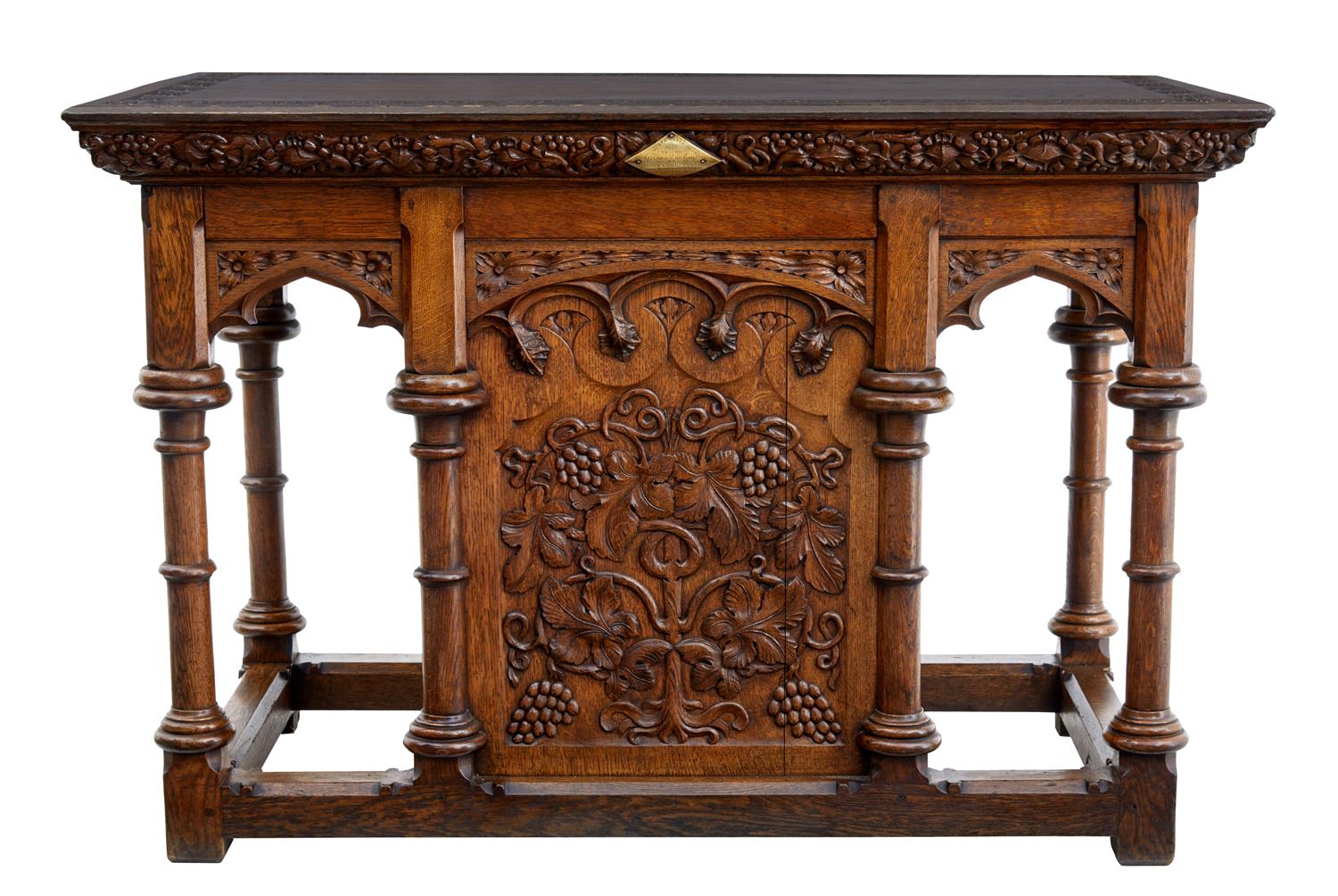 Early 20th Century Carved Oak Alter Table in the Gothic Taste (1 of 1)