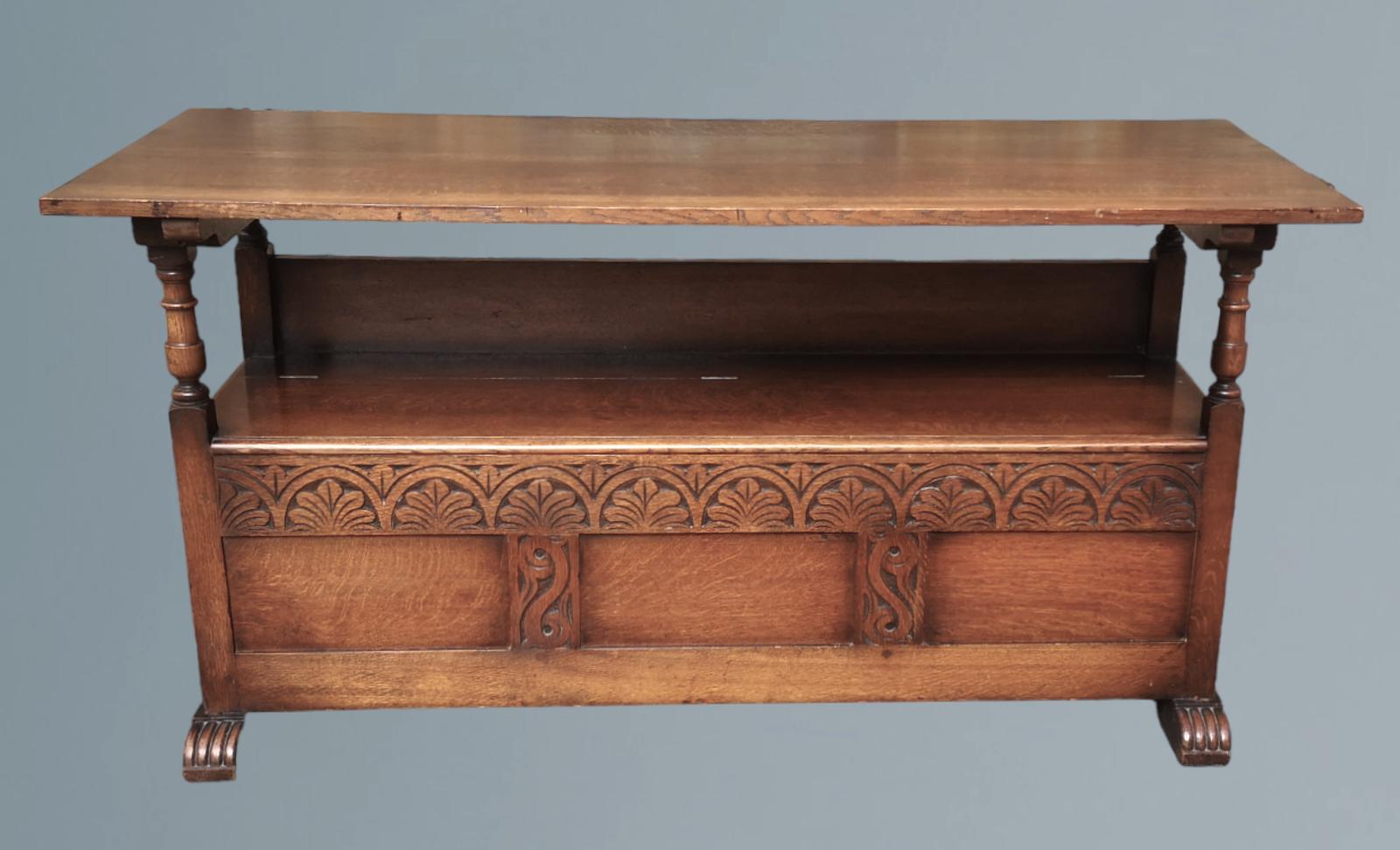 Early 20th Century Carved Oak Monks Bench
