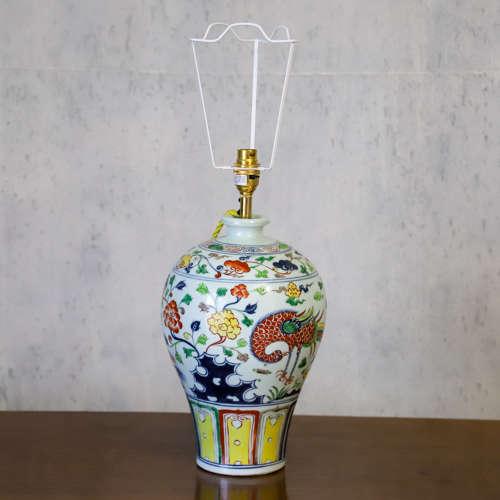 Early 20th Century Chinese Lamp with Pheasant & Flowers c.1920 (1 of 6)