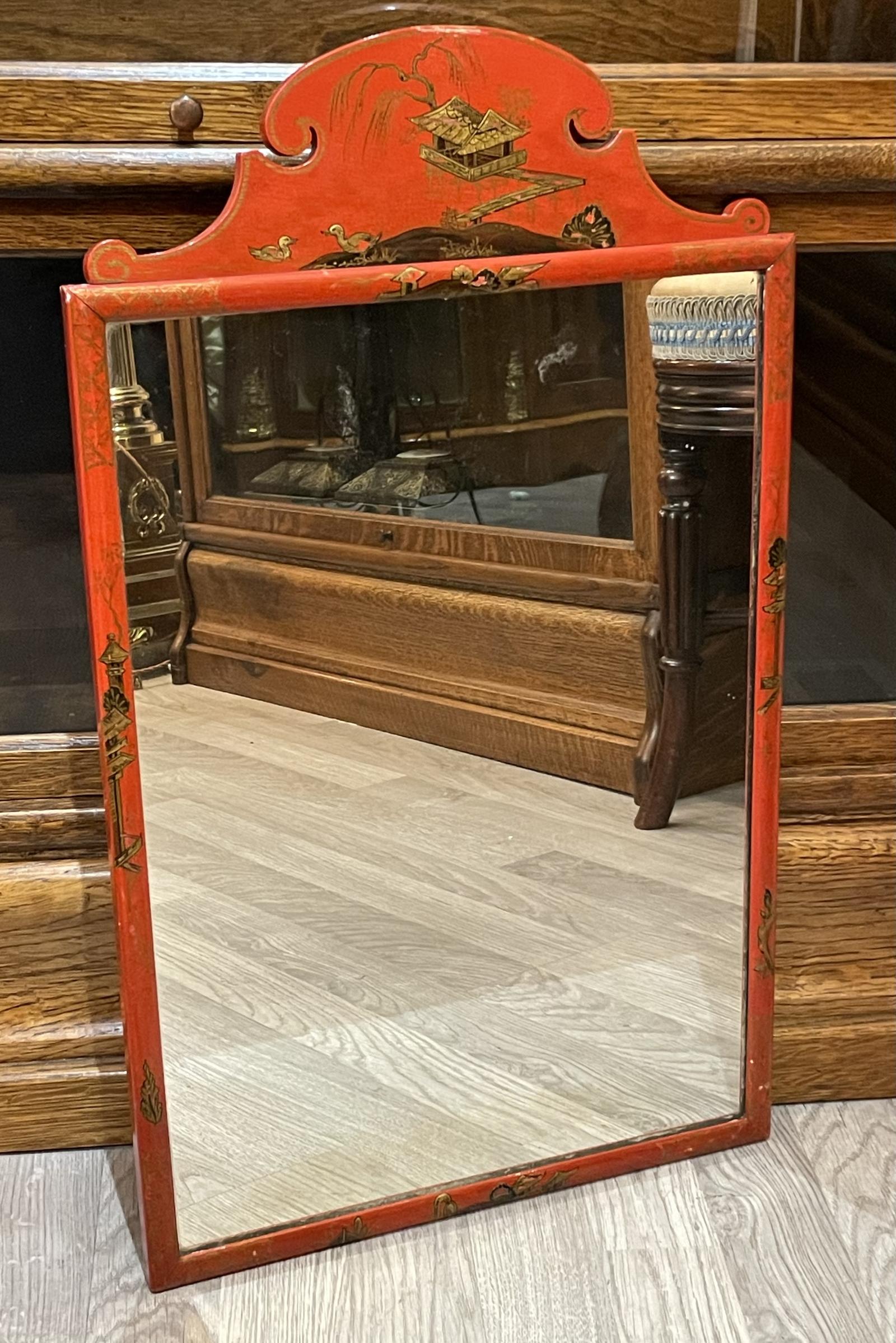 Early 20th Century Chinoiserie Red Lacquer Mirror (1 of 6)