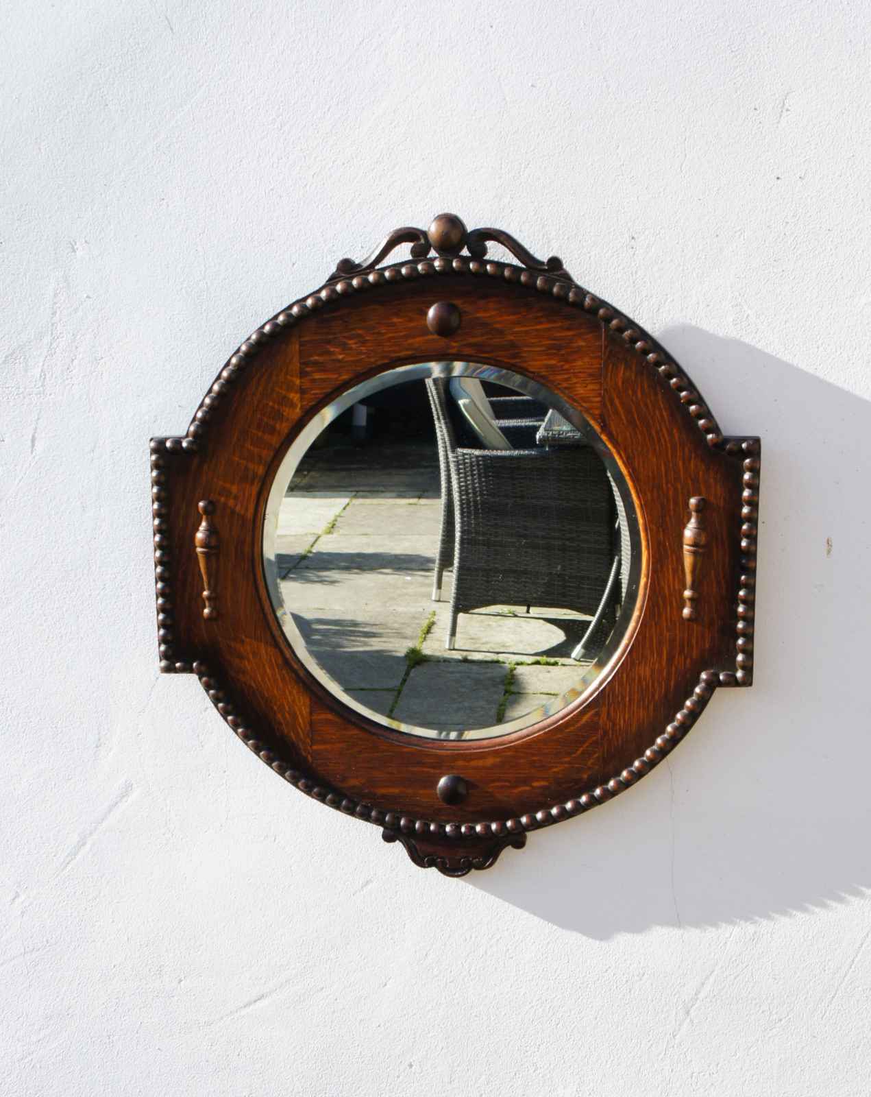 Early 20th Century Circular, Carved Oak Jacobean Style Wall / Hall Mirror