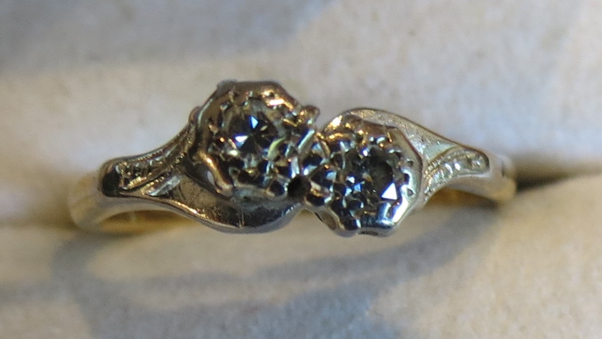 Early 20th Century Diamond Crossover 18ct Gold Ring - Size I (1 of 7)
