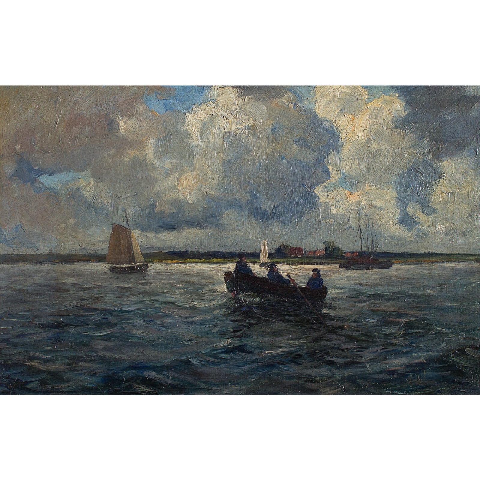 Early 20th Century Dutch School Oil Painting Fishermen on the Lake