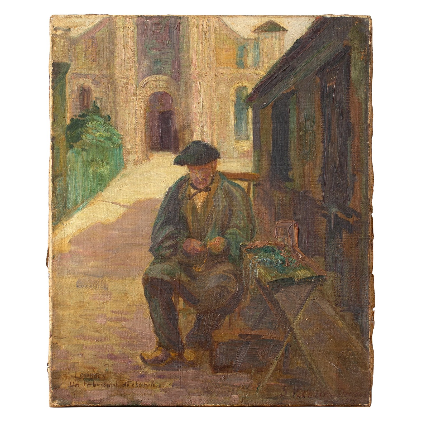 Early 20Th-Century French School Oil Painting, Rosary Maker in Lourdes