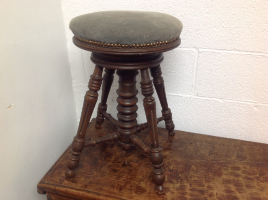 Early 20th Century French Stained Walnut Rotating, Swivel & Adjustable Height Piano Stool c.1930
