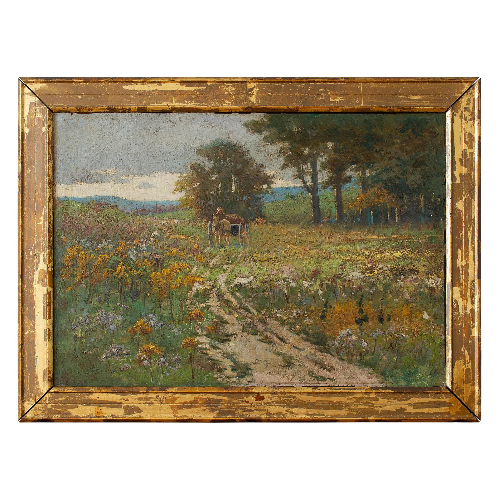Early 20th Century German School Impressionistic Landscape with Cart