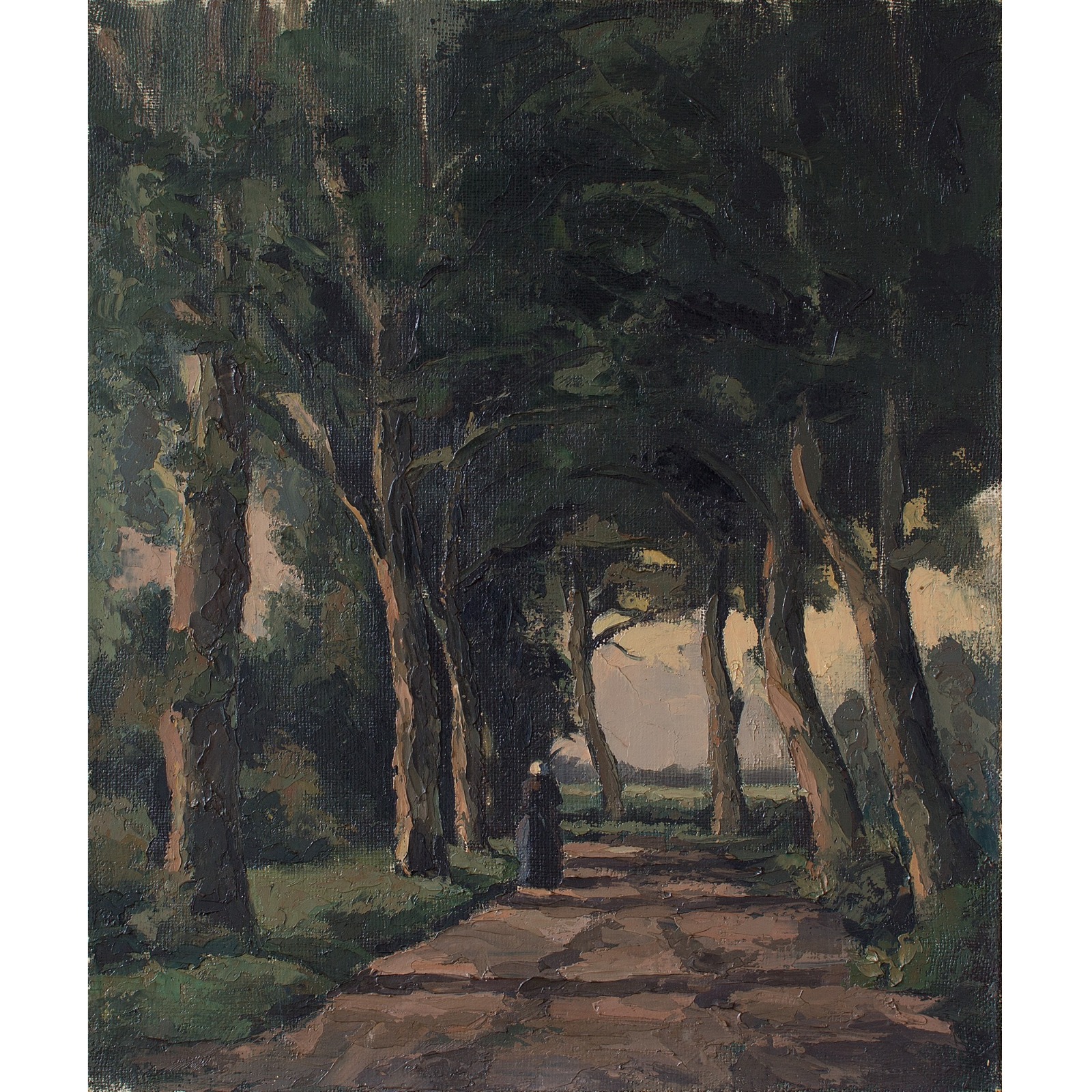 Early 20th Century German School, Woodland Track with Trees & Figure