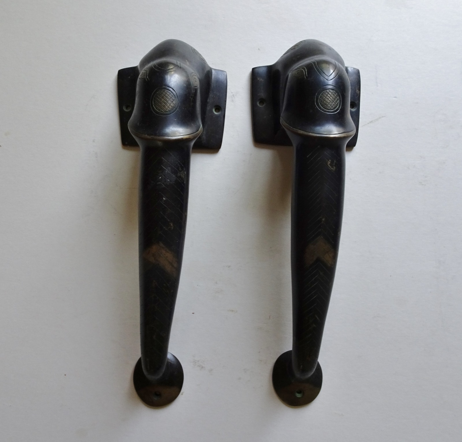 Early 20th Century Gilt & Ebonised Bronze Elephant Door Handles. Indian / African Colonial Style. Unique