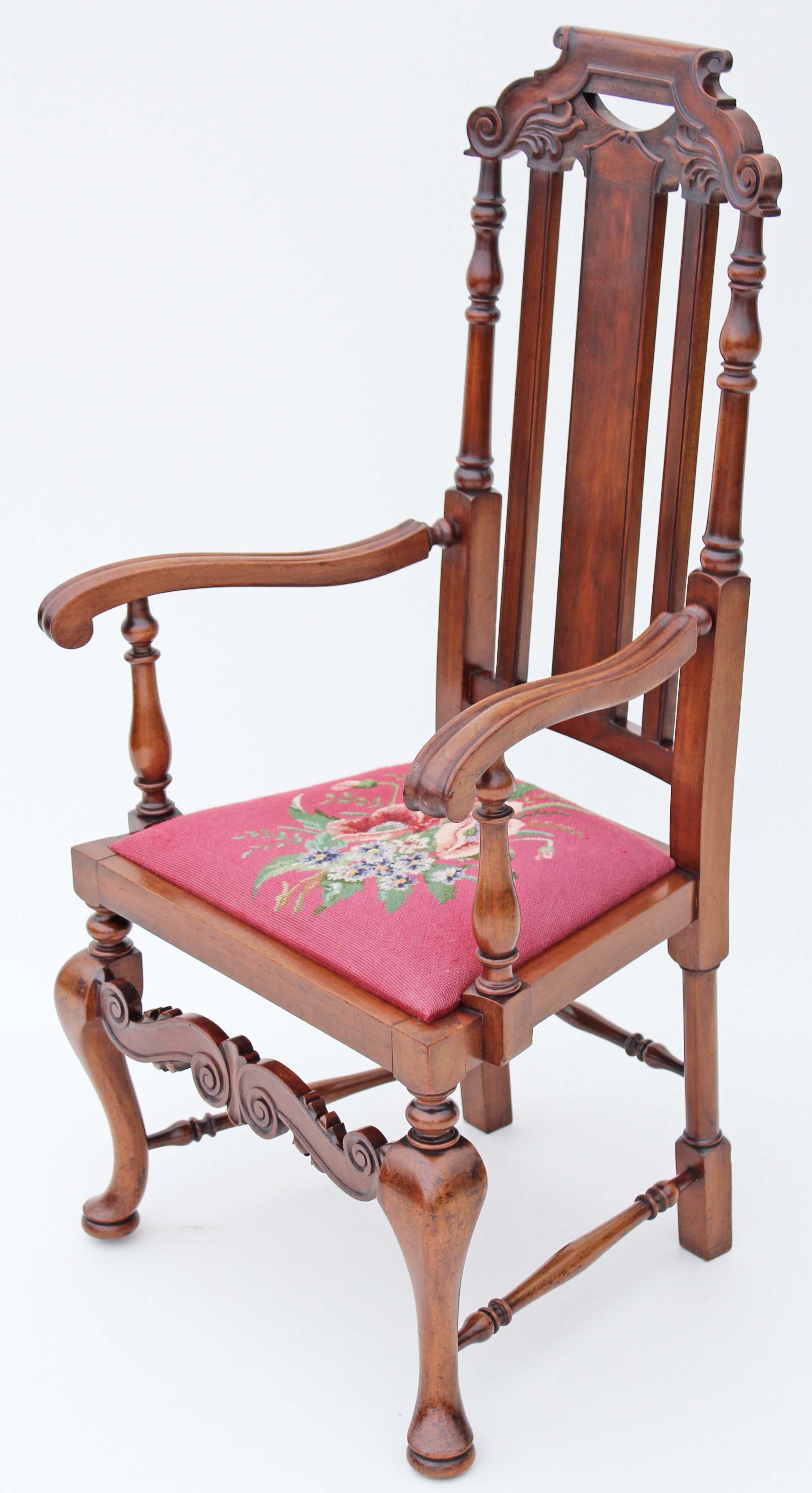 Early 20th Century Heavy Carved Walnut Throne Armchair / Hall Chair / Gothic Chair