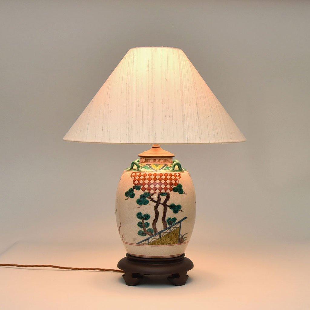 Early 20th Century Japanese Ceramic Lamp with Silk Shade (1 of 3)