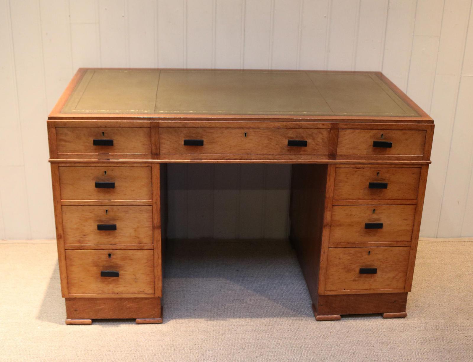 Early 20th Century Light Oak Pedestal Desk (1 of 10)