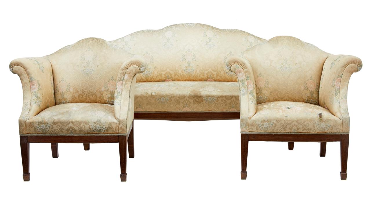 Early 20th Century Mahogany Camel Back 3 Piece Suite