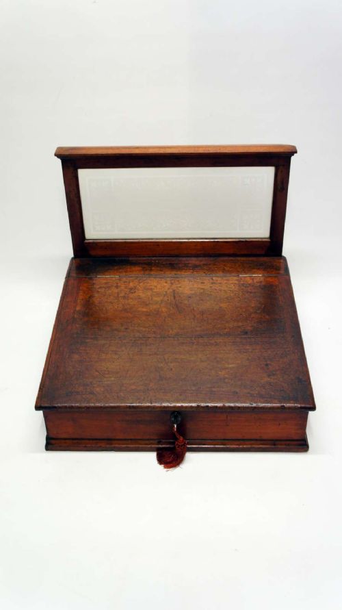 Early 20th Century Mahogany Clerks Desk with Etched Glass up-Stand