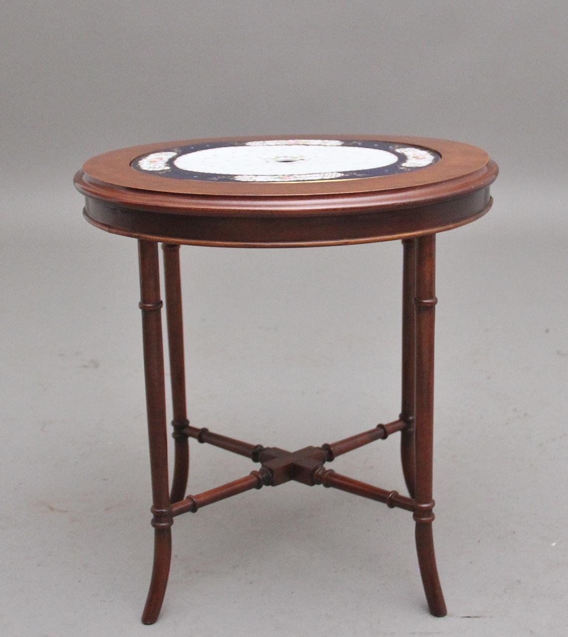 Early 20th Century Mahogany Occasional Table with Ceramic Inset