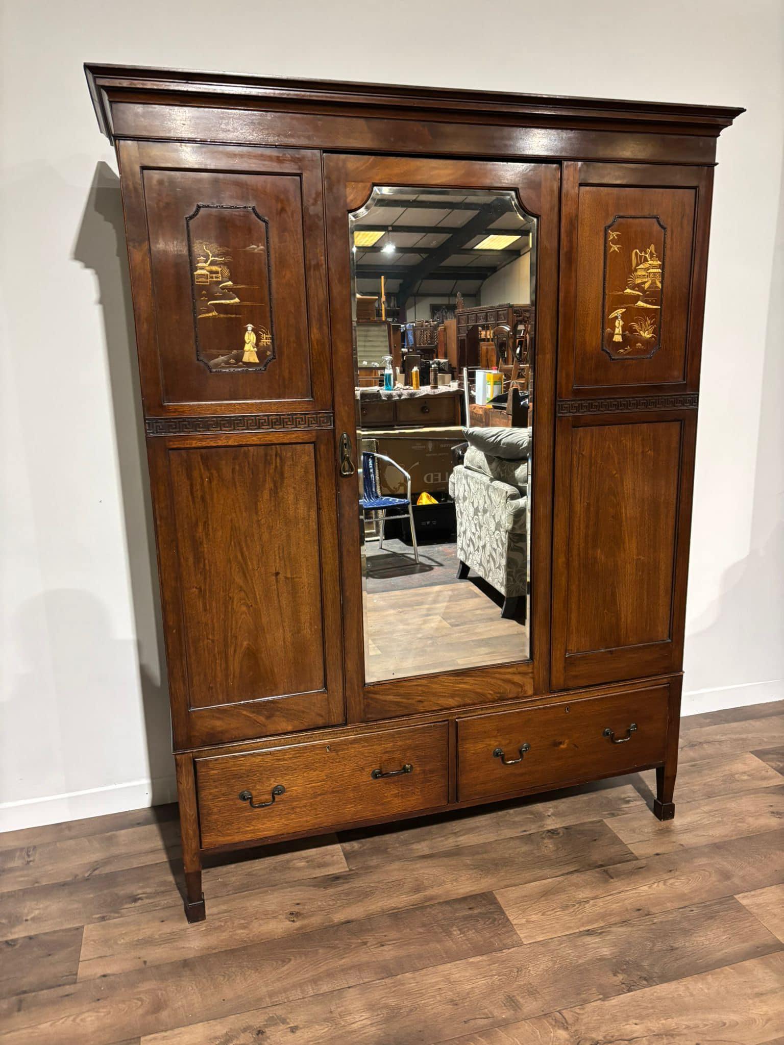 Early 20th Century Mahogany Wardrobe, Having Chinoiserie Lacquered Relief Panels (1 of 17)