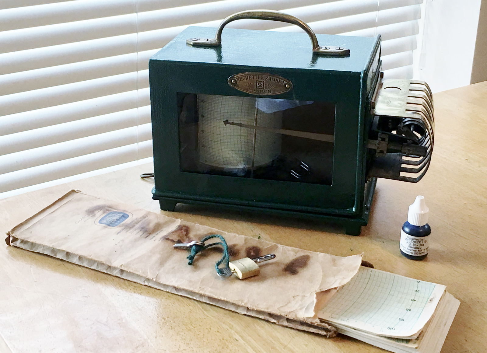 Early 20th Century Negretti & Zambra Metal Cased Thermograph with Charts & Ink Etc.
