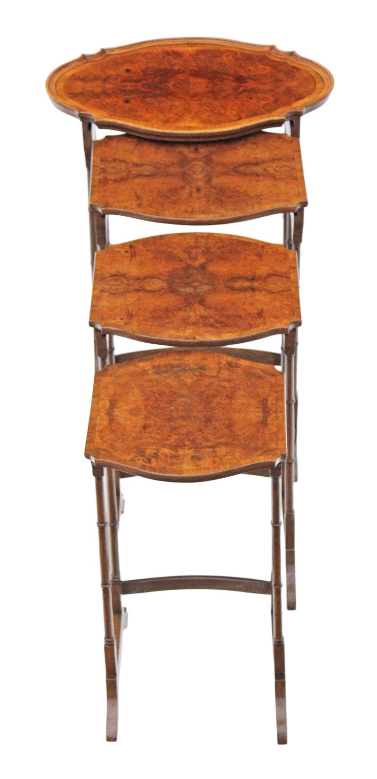 Early 20th Century Nest of 4 Burr Walnut Side Tables / Occasional Tables c.1920