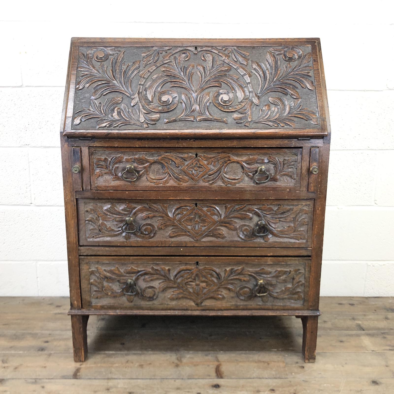 Early 20th Century Oak Carved Bureau (1 of 10)