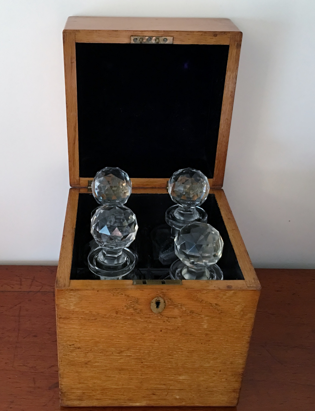 Early 20th Century Oak Decanter Box with 4 Glass Decanters