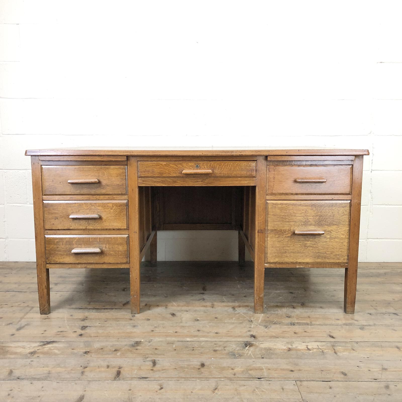 Early 20th Century Oak Desk with Six Drawers (1 of 10)