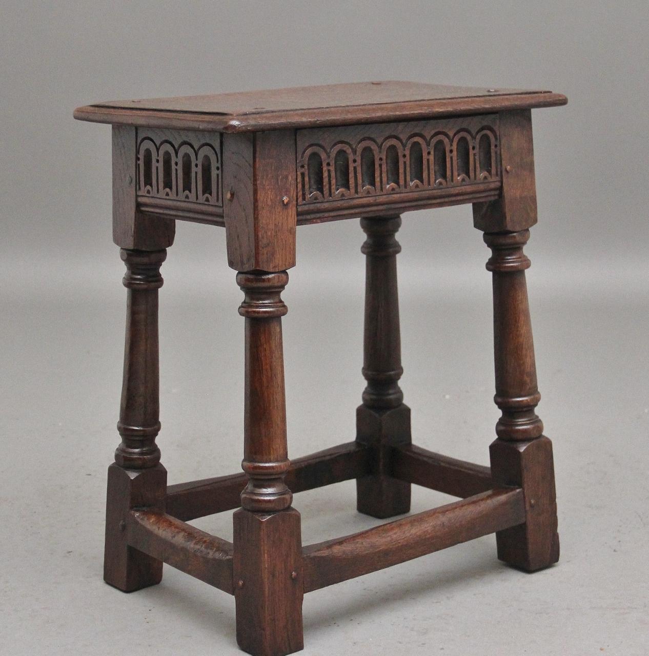 Early 20th Century Oak Joint Stool in the 17th Century Style