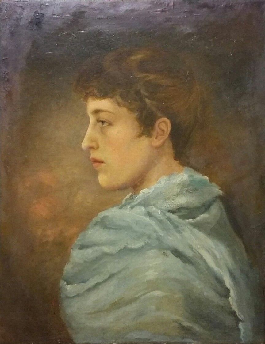 Early 20th Century Oil on Canvas Portrait Painting of a Young Victorian Lady - Unframed
