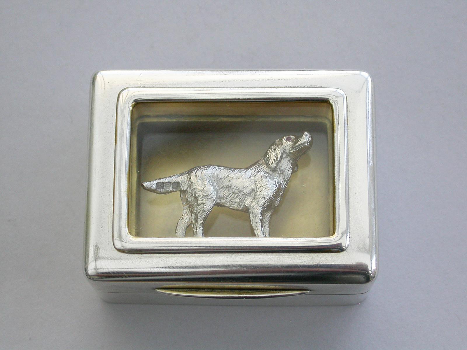 Early 20th Century Parcel Gilt Silver Table Vesta Case with Internal Cast Silver Spaniel by Goldsmiths & Silversmiths, London, 1912