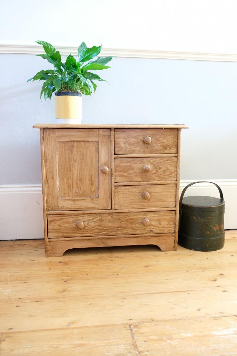 Early 20th Century Pine Cabinet With One Long & Three Small Drawers