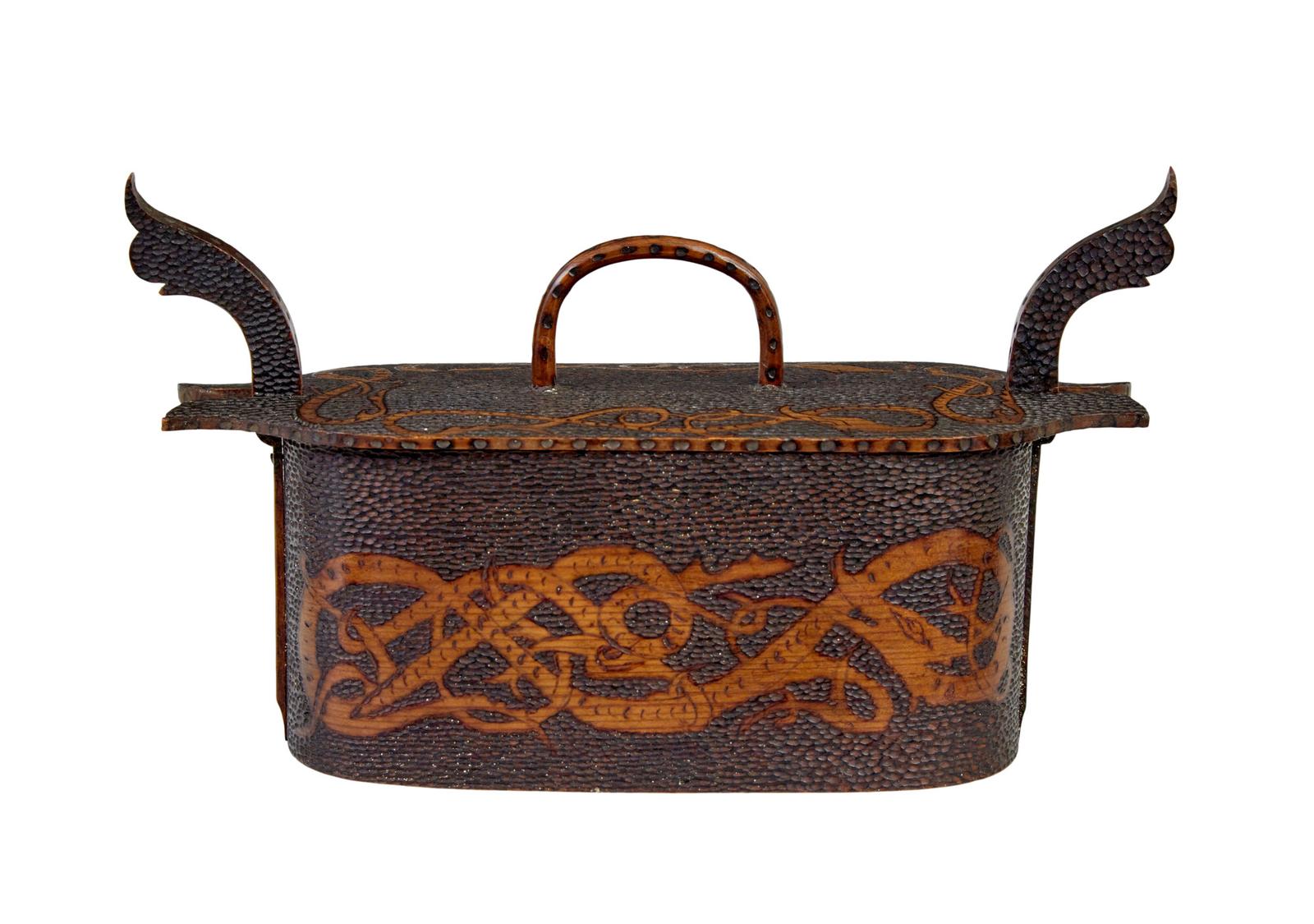 Early 20th Century Scandinavian Pokerwork Tine Box