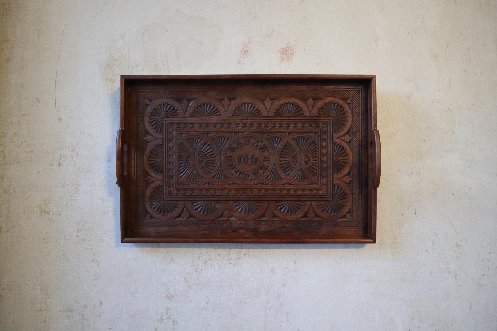 Early 20th Century Scottish Arts & Crafts Revival Oak Chip-Carved Serving Tray (1 of 46)
