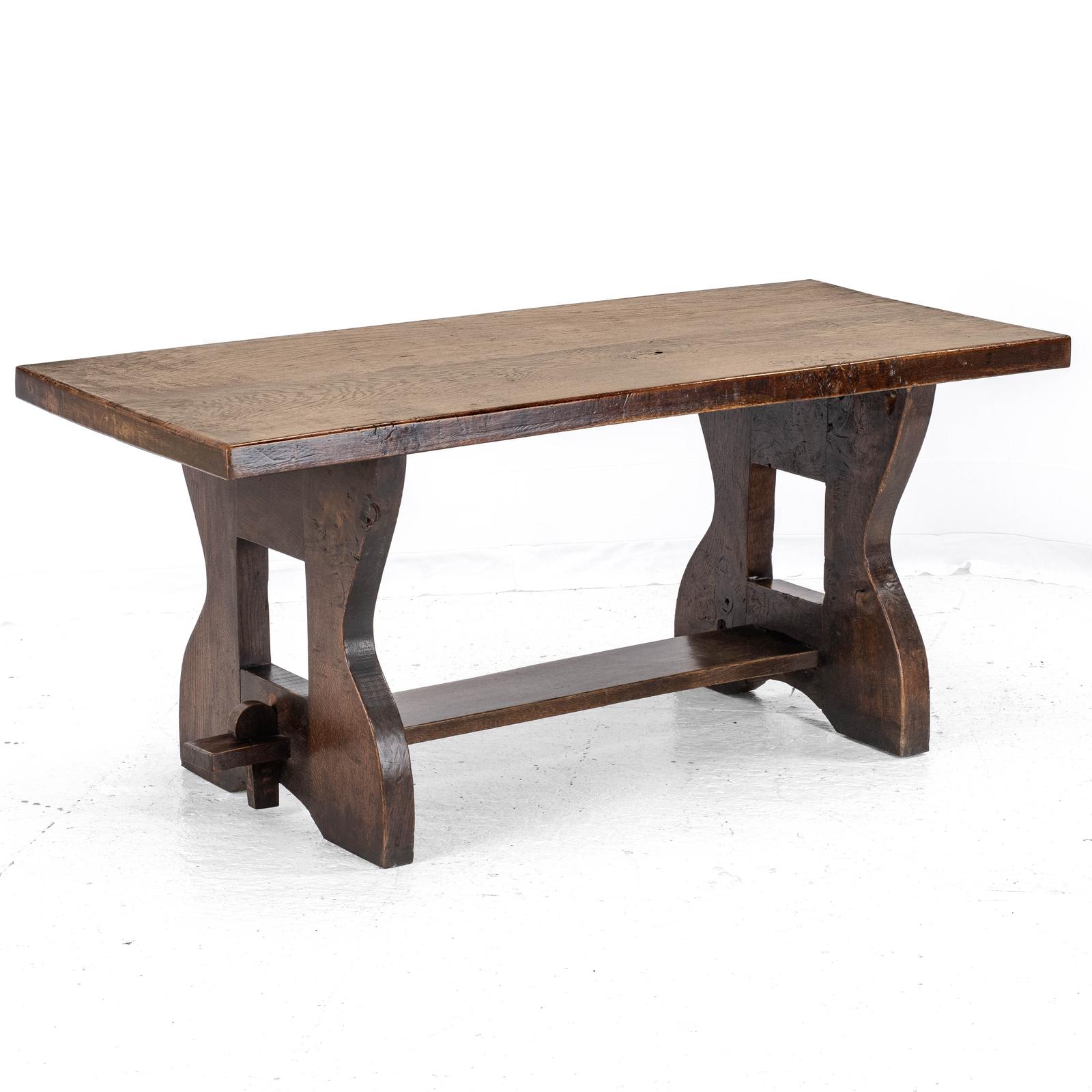 Early 20th Century Solid Oak Small Country Plank-top Refectory Dining Table