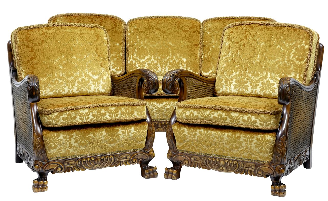 Early 20th Century Swedish Carved Birch Bergere Suite Sofa Armchairs (1 of 1)