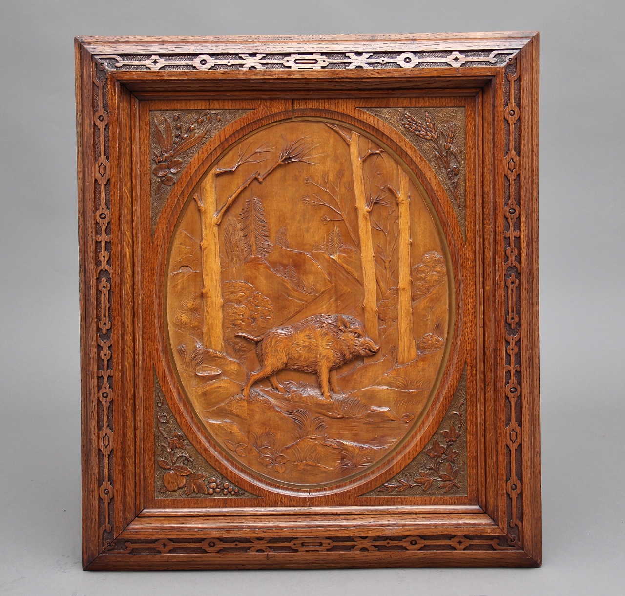 Early 20th Century Swiss Carved Oak Panel (1 of 1)