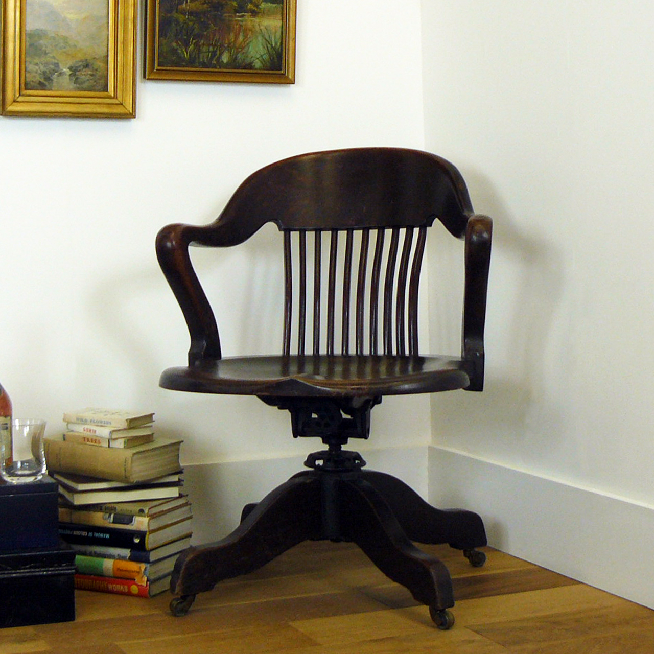 Early 20th Century Vintage Swivel Oak Desk Office Chair