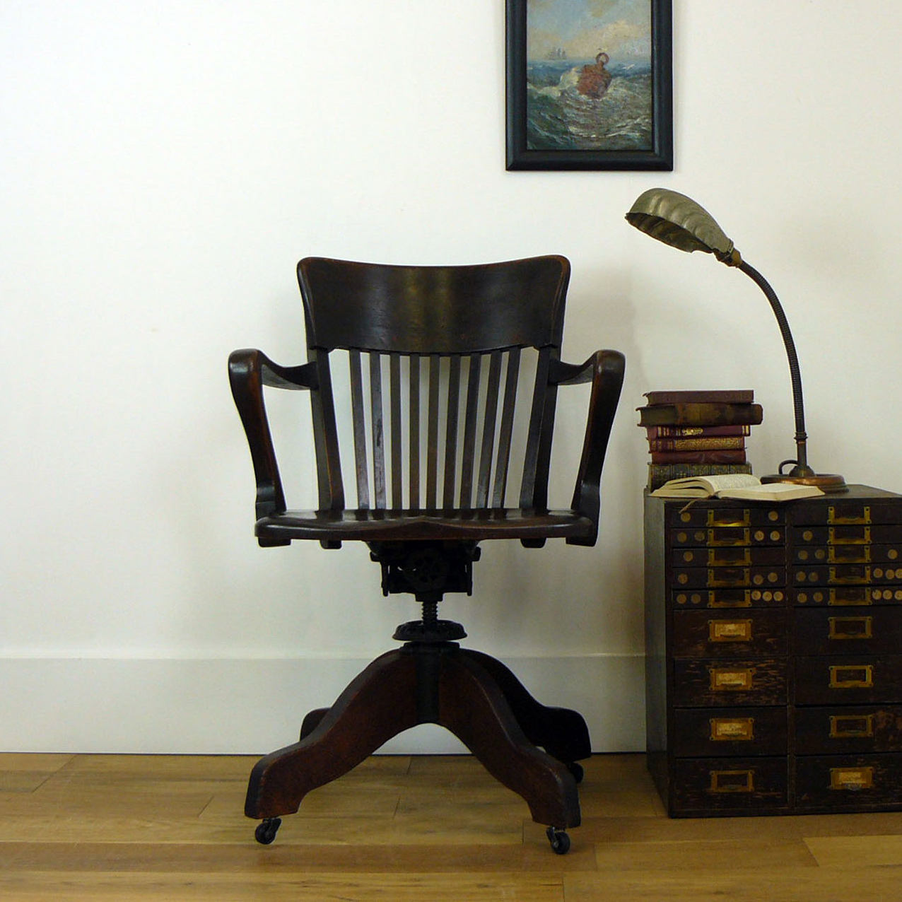 Early 20th Century Vintage Swivel Oak Desk Office Chair