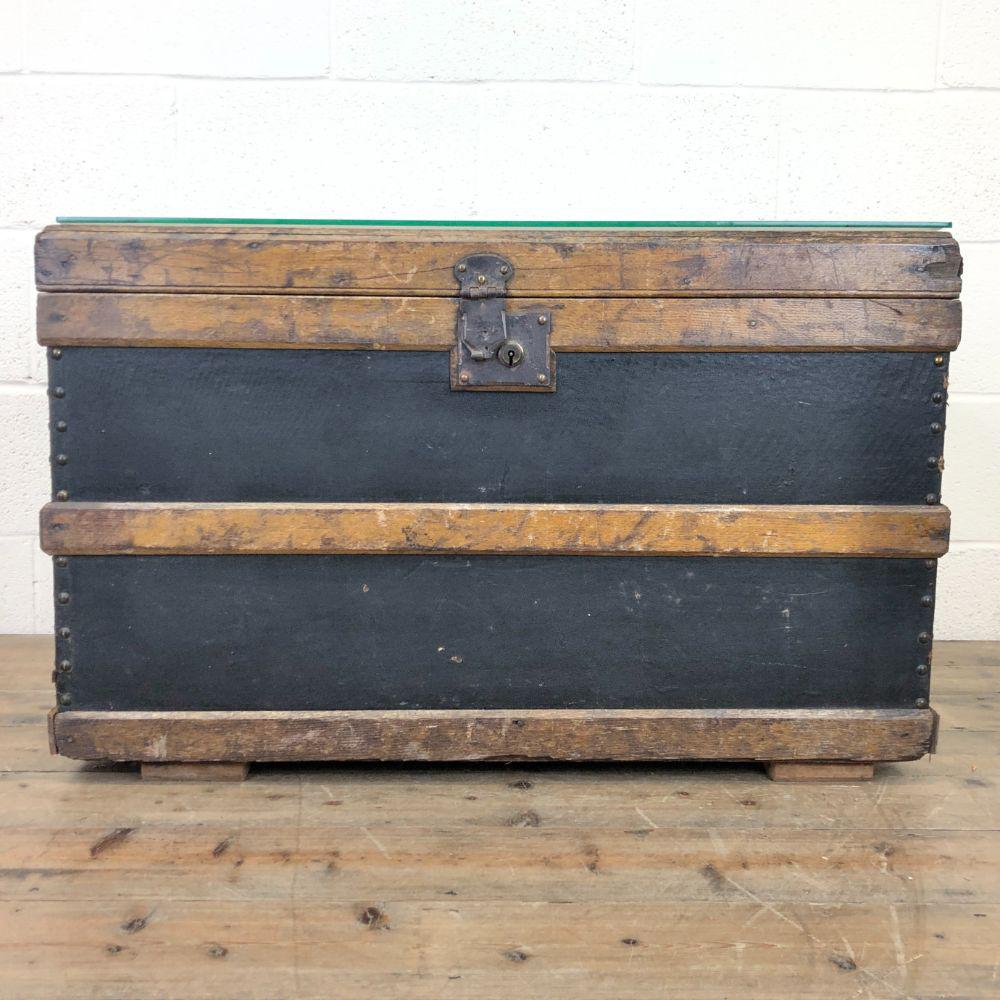 Early 20th Century Wooden Bound Trunk (m-2302)