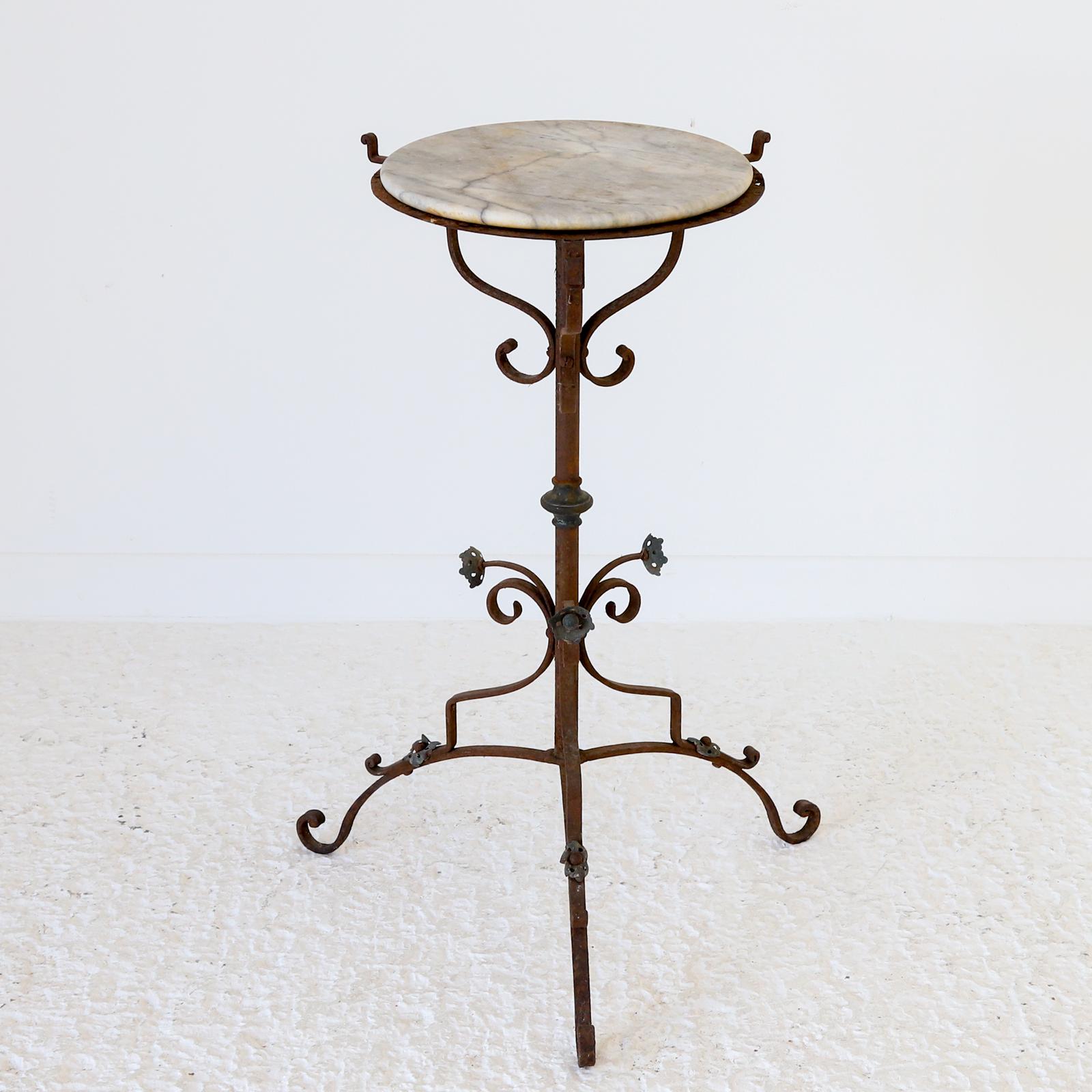 Early 20th Century Wrought Iron Occasional Table with Marble Top