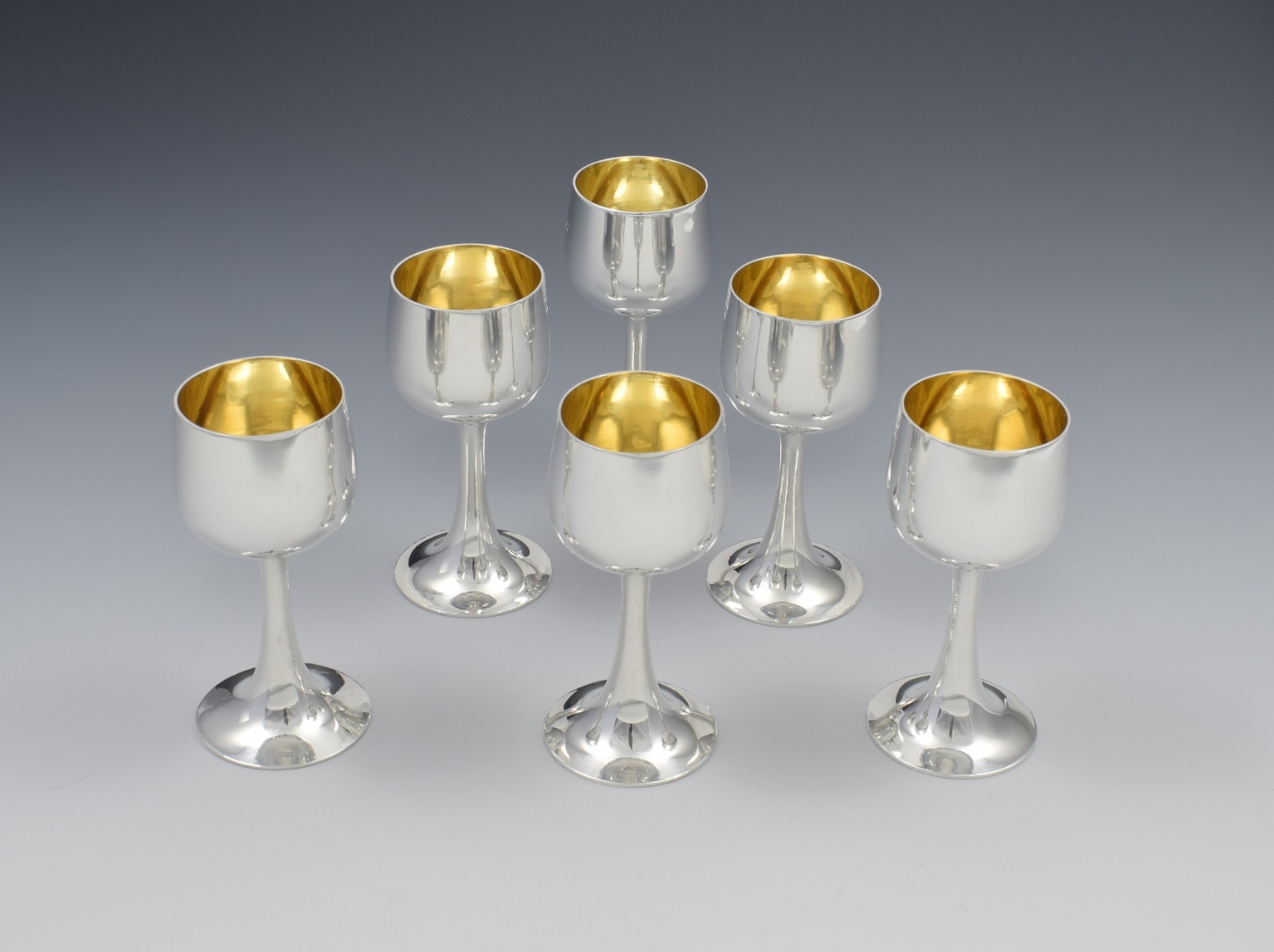Early George V Set of 6 Silver Goblet Liqueur Tot Cups