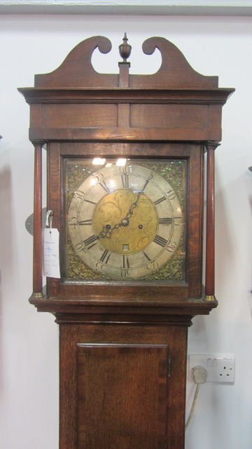Early Georgian 11.5in Square Brass 8 Day Oak Longcase Clock