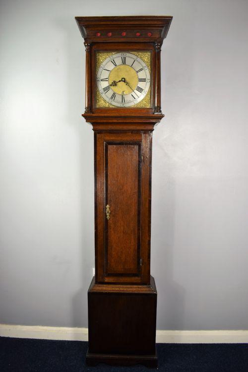 Early Georgian C. 1730 Oak Grandfather Longcase Clock "London Quality" E. Sanders of Poole, Dorset. Long Case