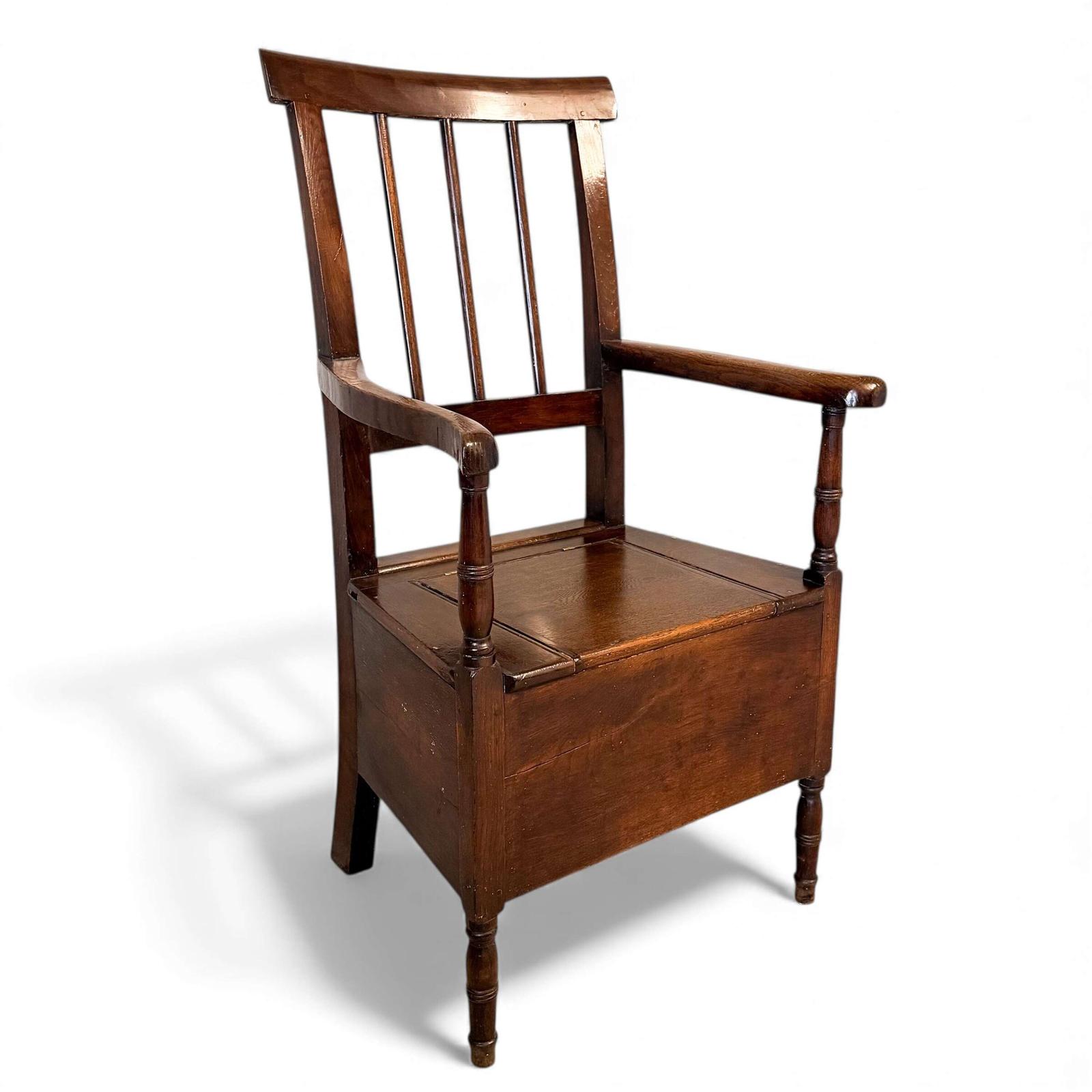 Unlike later Victorian examples, this chair was conceived with discretion and refinement, combining domestic necessity with the visual language of a well-made armchair. The commode is accessed discreetly through the rear, allowing the chair to remain visually unobtrusive within a room - an important consideration in polite households of the period.