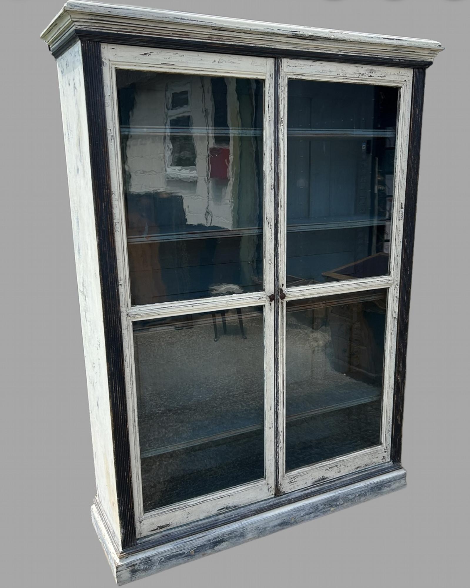 Early Glass Fronted 20th Century Painted Pine Hall / Kitchen Cupboard