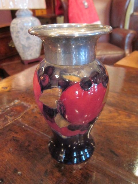 Early Moorcroft Pomegranate Pewter Top Vase c.1919