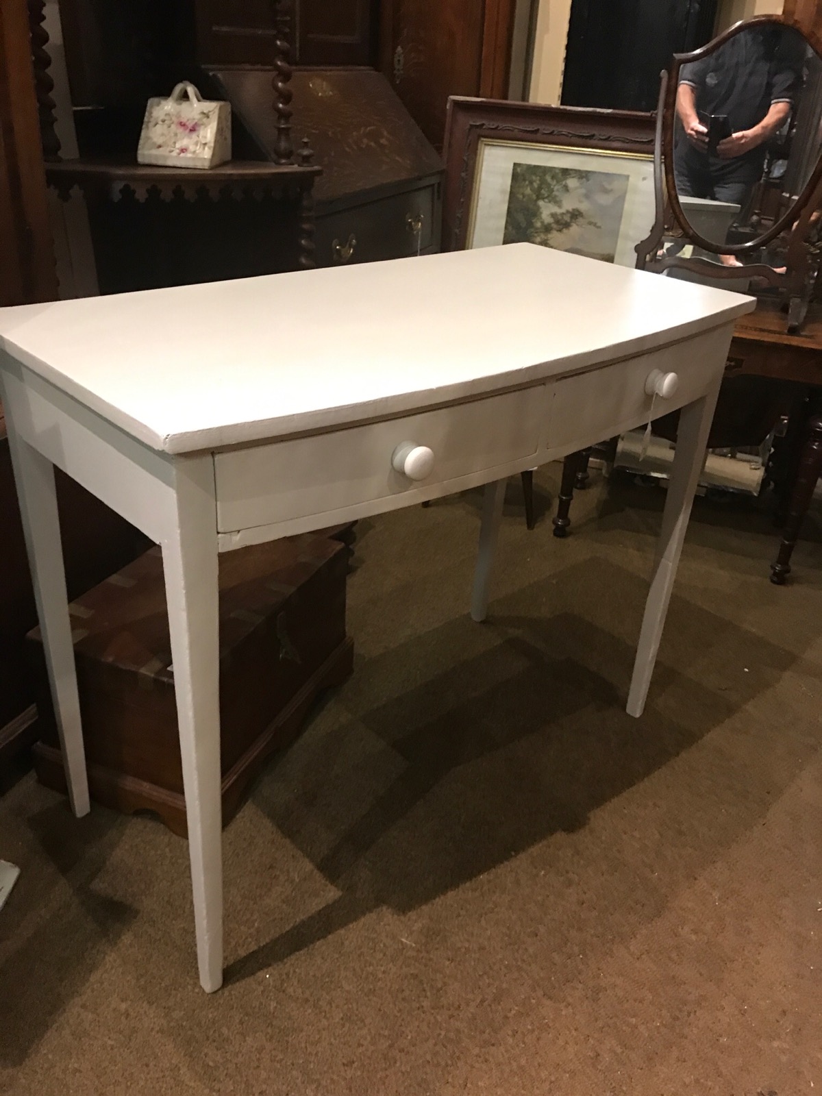 Early Painted 2 Drawer Side Table (1 of 1)
