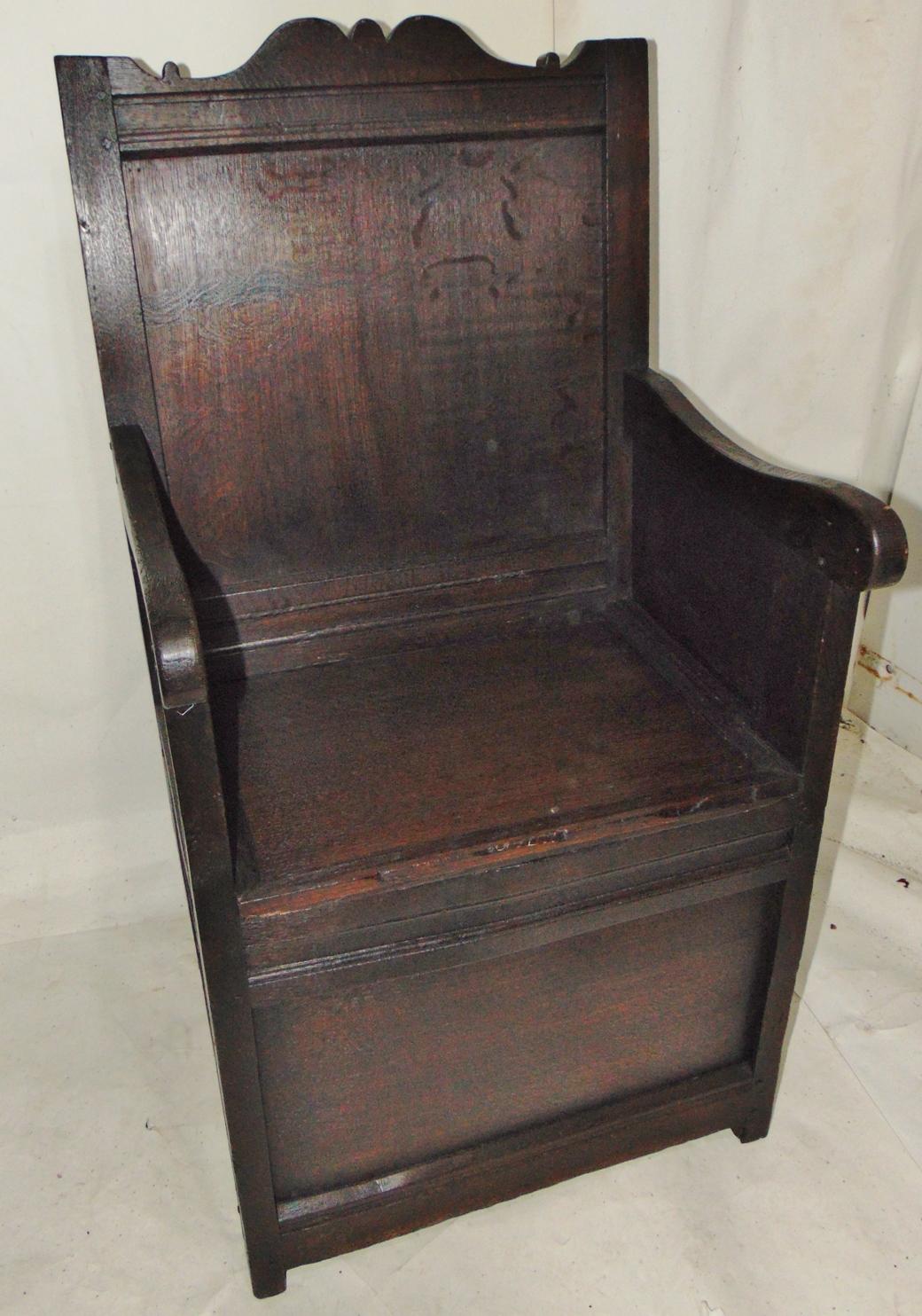 Early Paneled Oak Lambing Chair