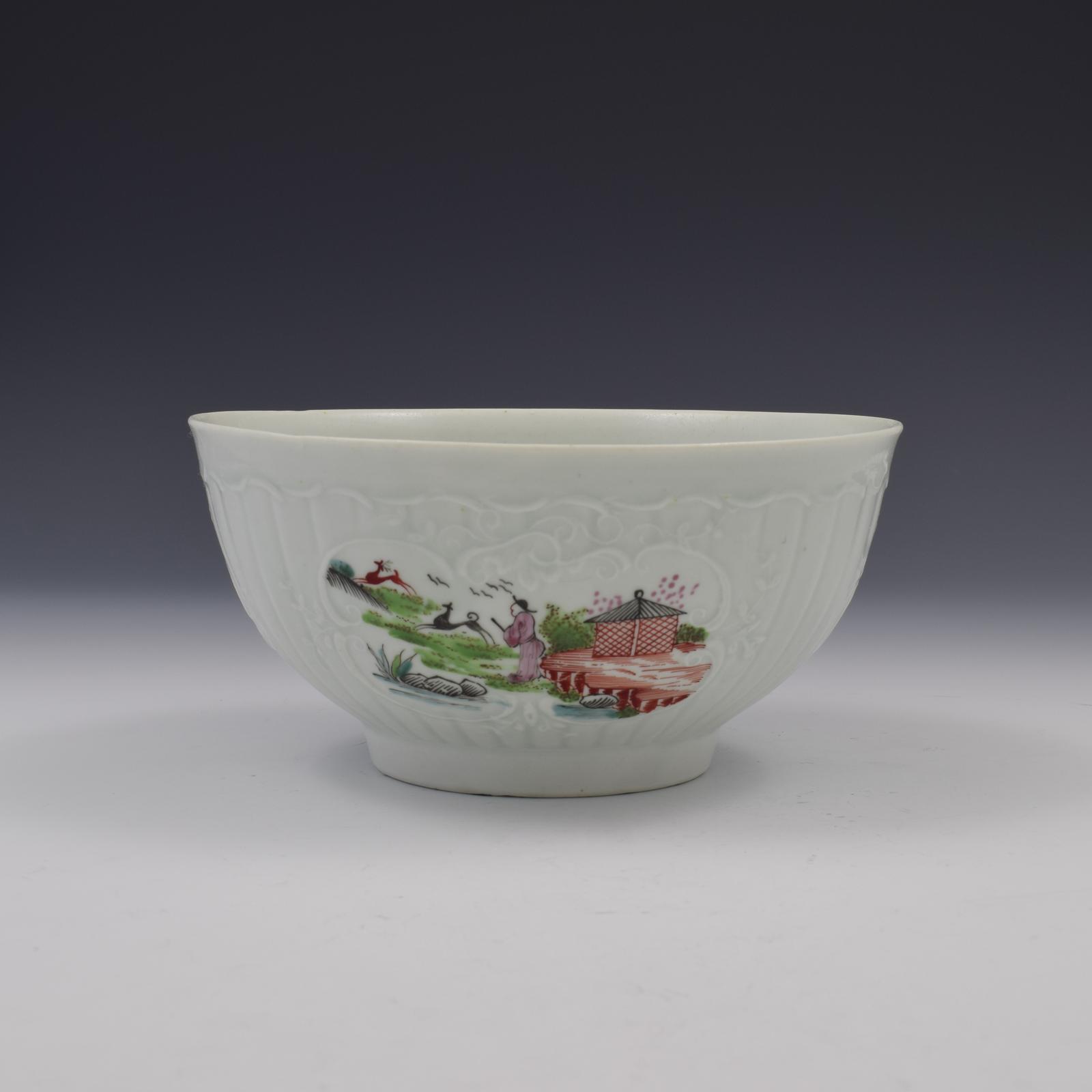 Early Period Worcester Porcelain Stag Hunt Moulded Slop Bowl c.1755